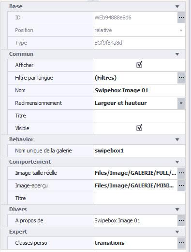 We have developed a special element, the Image Swipebox element. This element comes from the JS Swipebox plugin. It is a responsive gallery suitable for all formats. Its use has been simplified so that any gallery is possible.