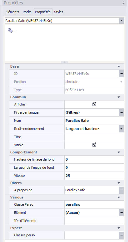 Once your parameters are finished, put the parallax class in the element panel (or else if you have changed the class in the element).